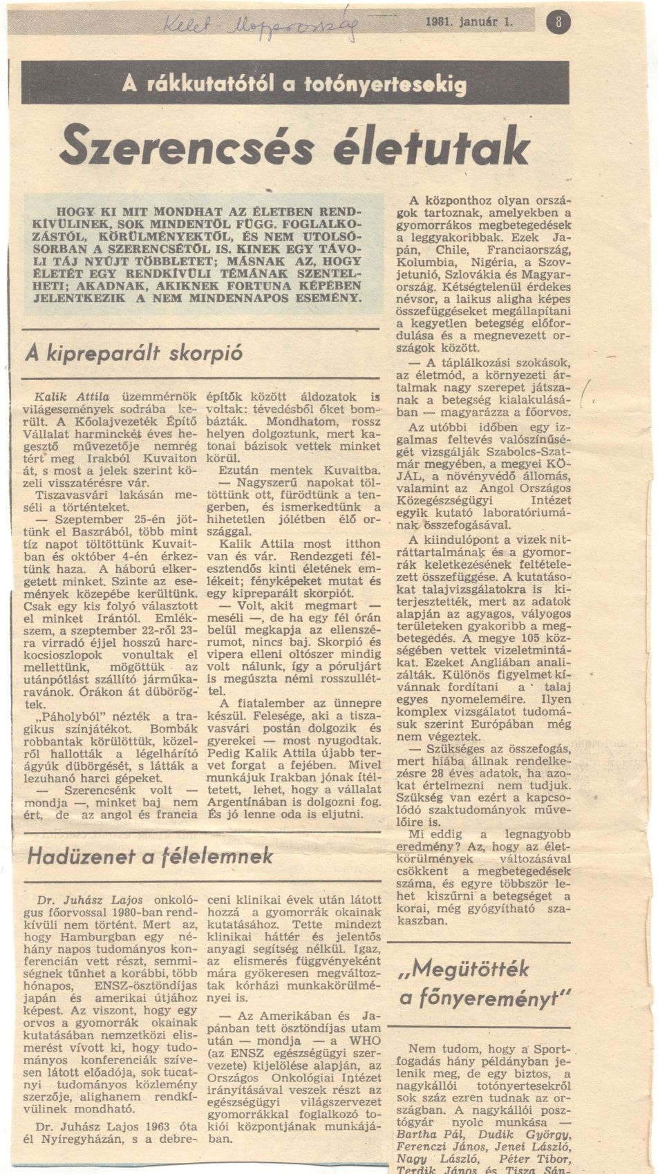 • A rákkutatástól a tótónyertesekig szerencsés életutak_KM 1981.01.01