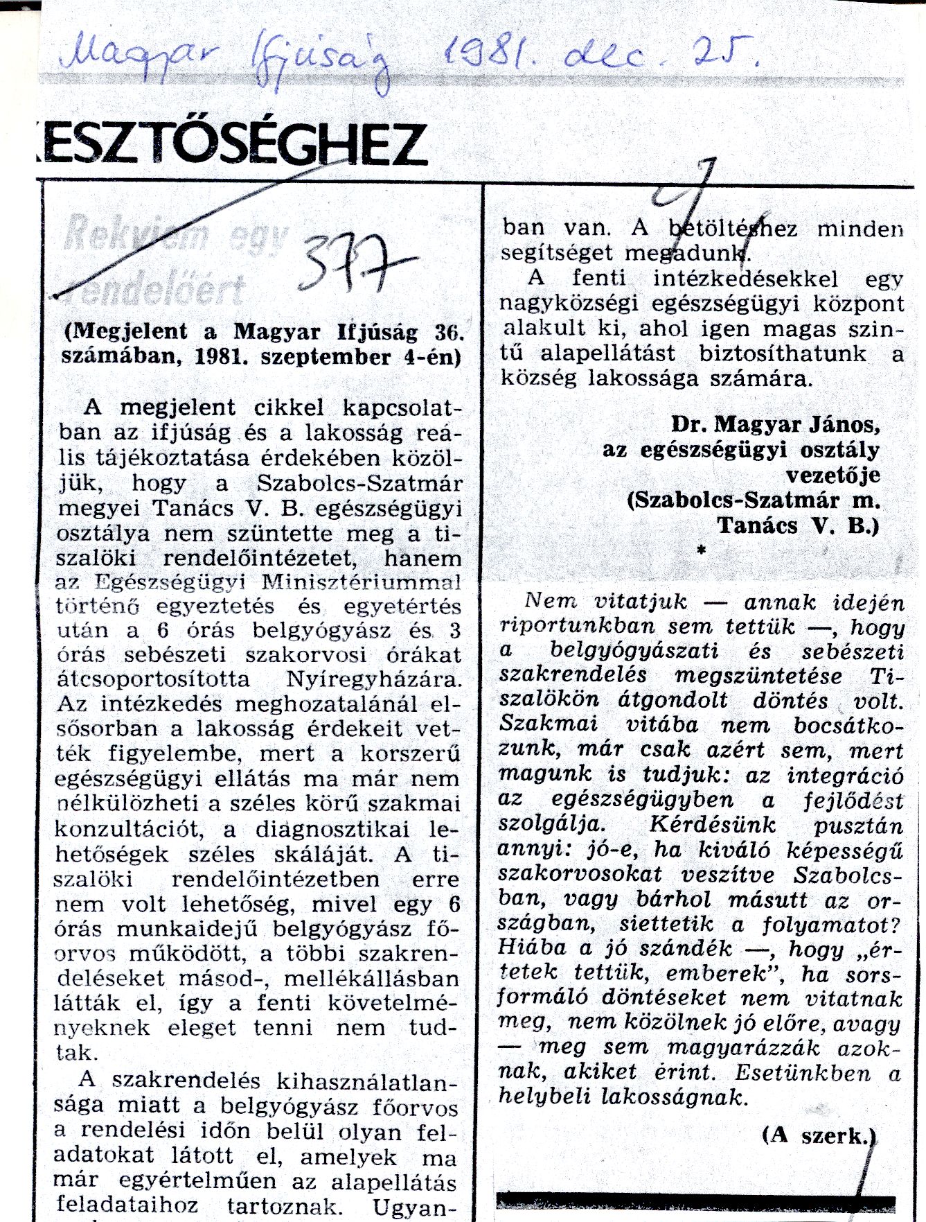 • Rekviem egy rendelőért_Magyar Ifjúság 1981.12.25