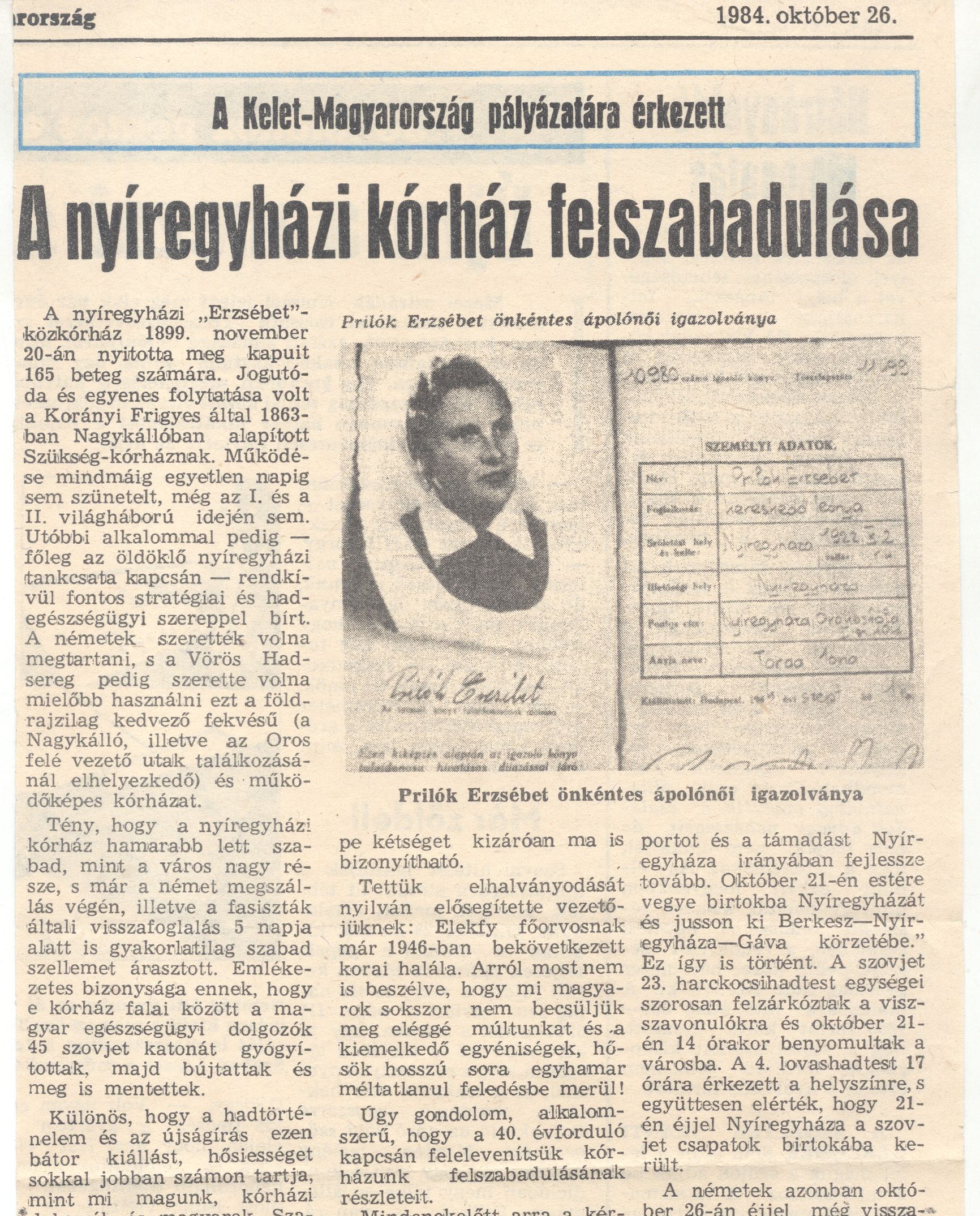 • A NyH-i kórház felszabadulása _KM 1984.10.26-30