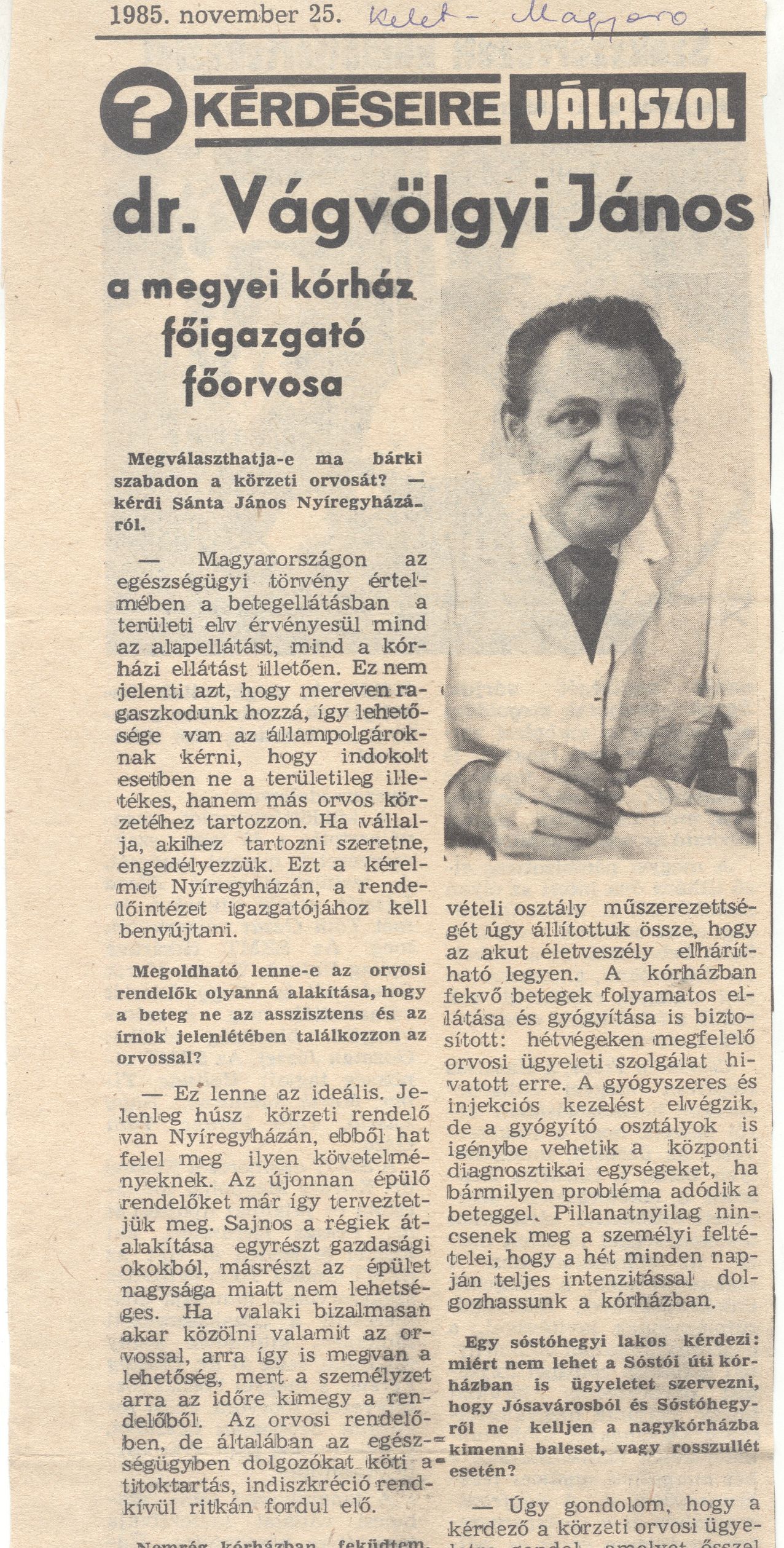 Dr. Vágvölgyi János főigazgató_KM 1985.11.25