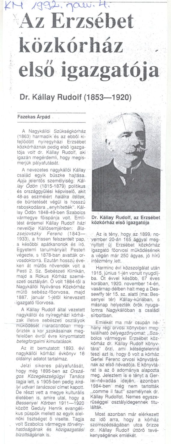 Az erzsébet közkórház első igazgatója_KM 1992.01.04