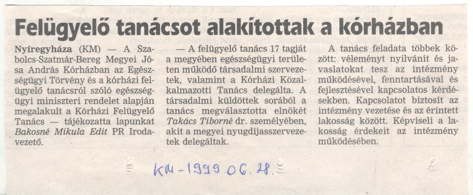 Felügyelő tanácsot alakítottak a kórházban_KM 1999.06.28.jpg
