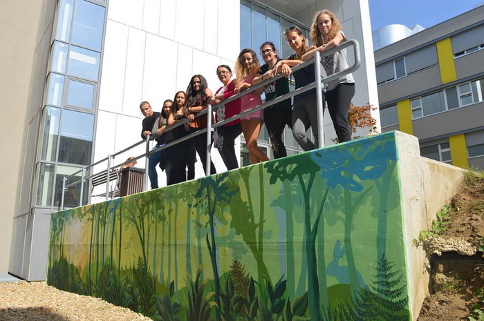 Erdei hangulatot varázsoltak az Abigél Művészeti Szakgimnázium képzőművészetis diákjai és tanárai a napokban az Onkológiai alagsor betonfalára.