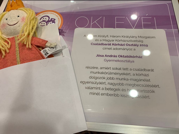A Magyar Kórházszövetség XXXI. kongresszusán "Családbarát Kórházi Osztály" címben részesült a Jósa András Oktatókórház, valamint a Fehérgyarmati Kórház és Gyógyfürdő Gyermekosztálya és a Sántha Kálmán Szakkórház Gerontopszichiátriai Osztálya.