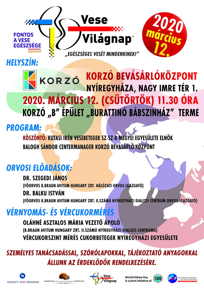 Vese Világnap 2020 Minden érdeklődőt szeretettel várnak március 12-én, a Korzó Bevásárlóközpontban, a Vese Világnapján!